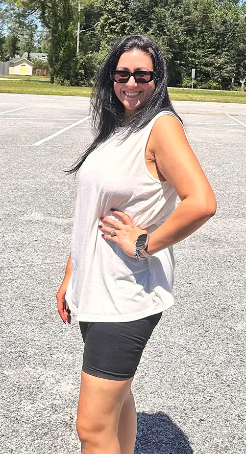 “With so much weight lose I had to buy new clothes and couldn’t believe that I went from a size 14 to a 4. I never thought I could be a 4 in pants or buy an extra small in yoga pants. I love my body!”