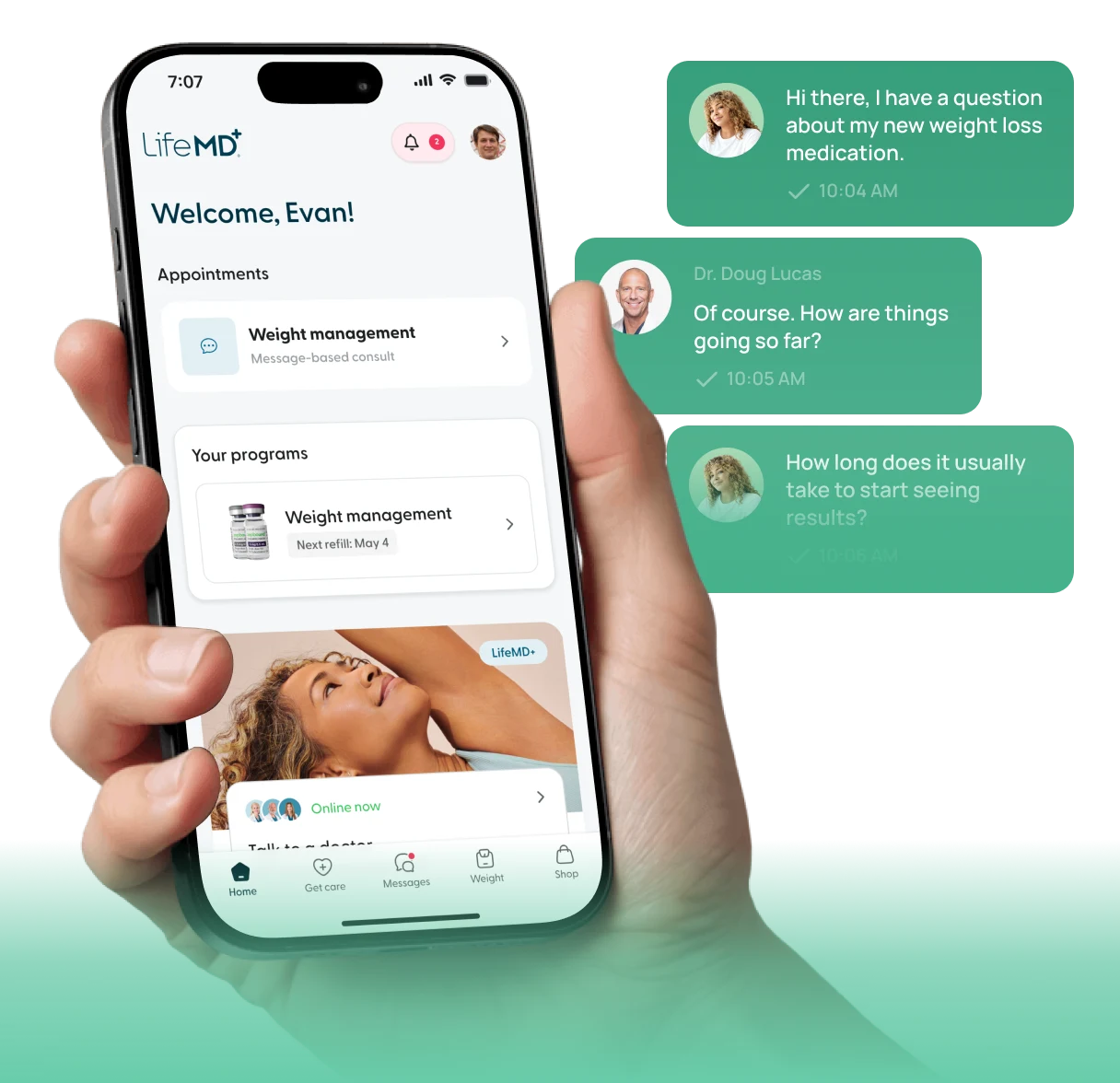 We’re here to help you achieve your weight loss goals. LifeMD pairs access to groundbreaking